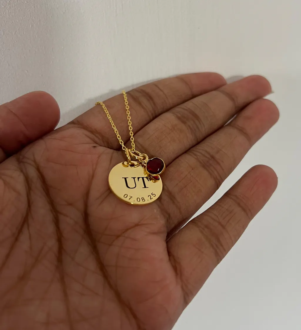 - Dimensions: 15mm disk pendant with 3mm CZ Birthstones